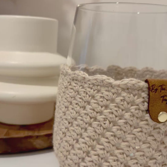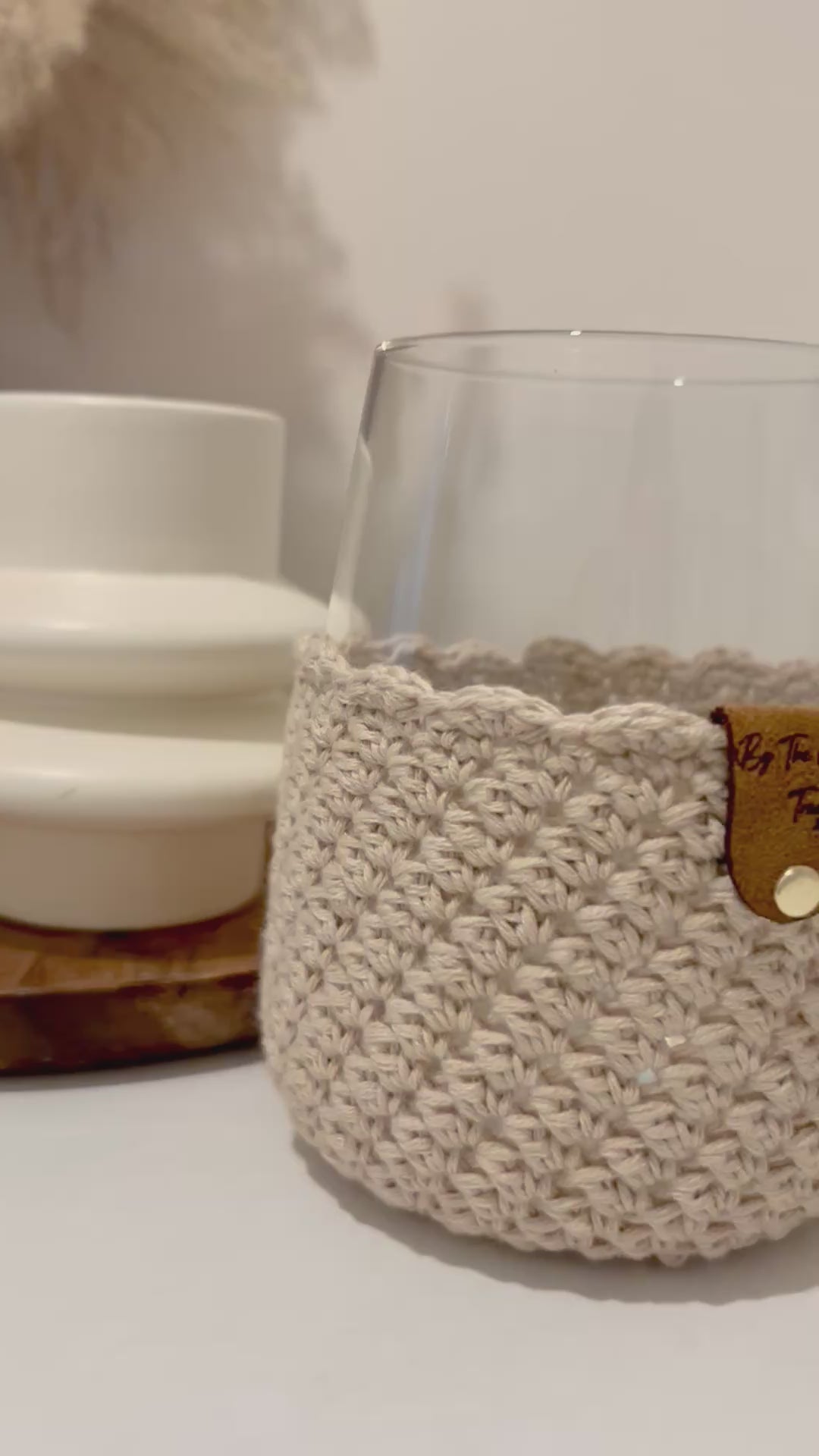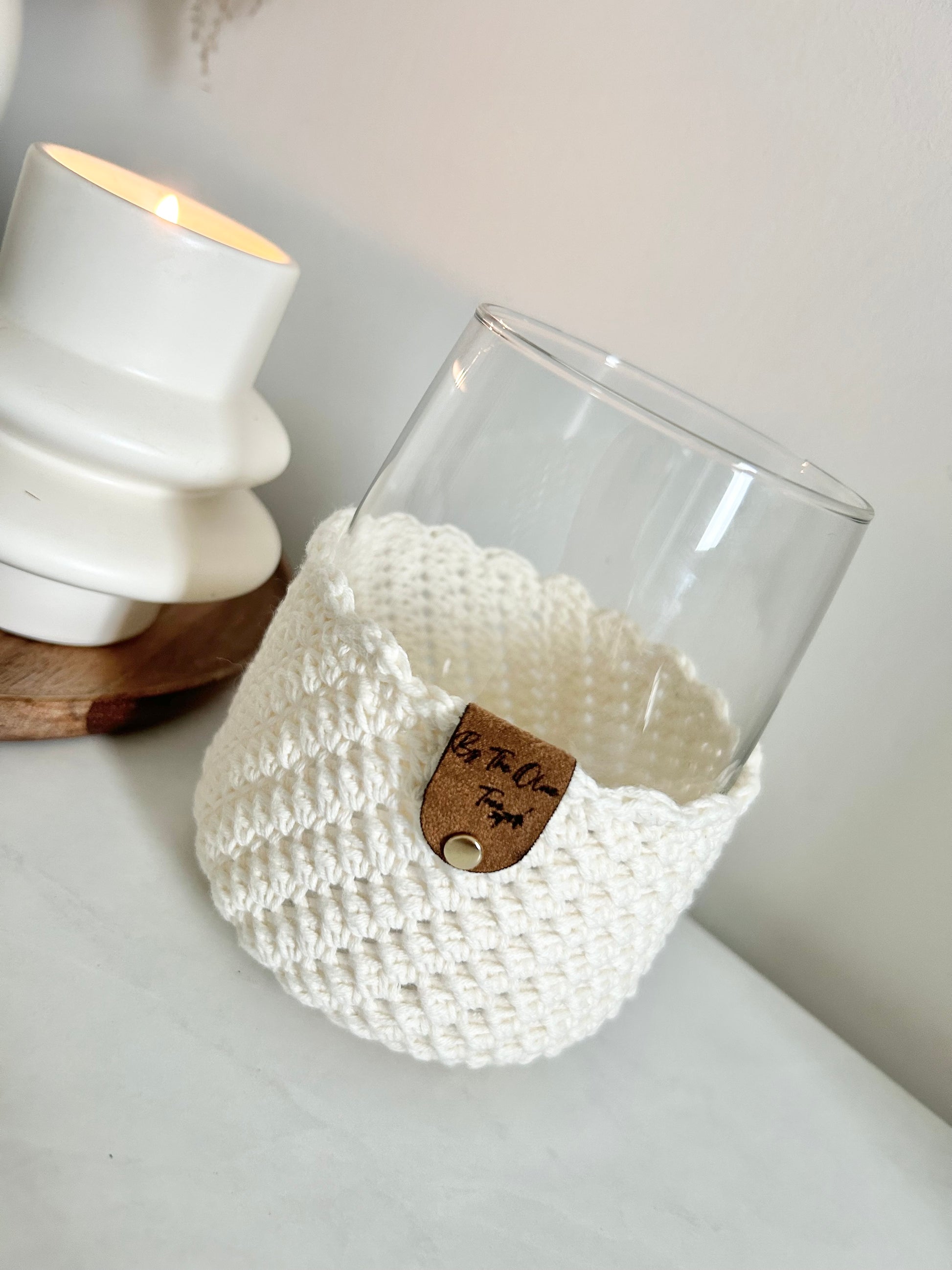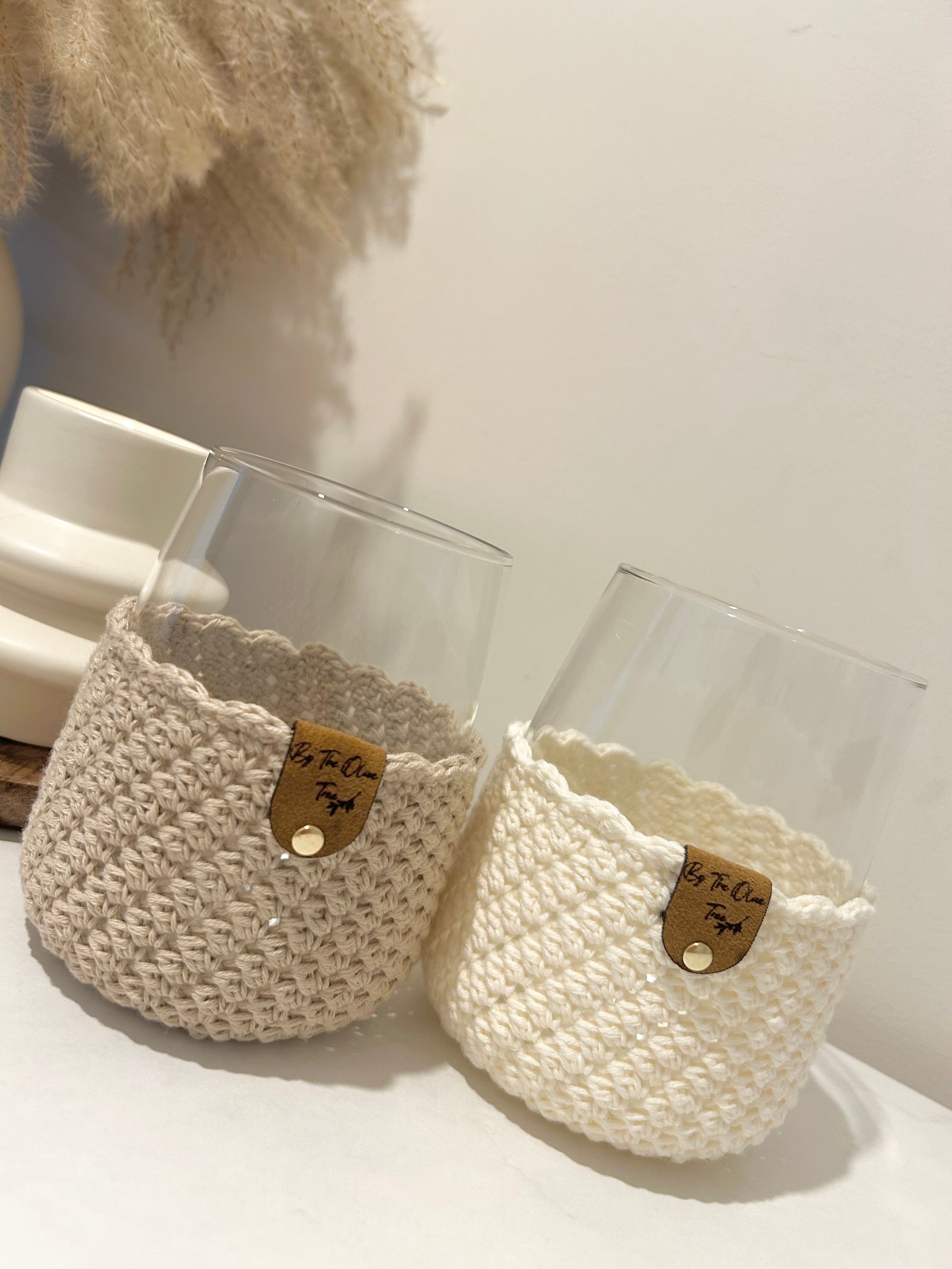 The crochet covers slide on and off so you can wash the glass at ease. Although the covers could be gently machine washed at 30 degrees (inside a laundry bag to avoid snagging of the yarn), I personally recommend washing them by hand gently where possible for longevity.