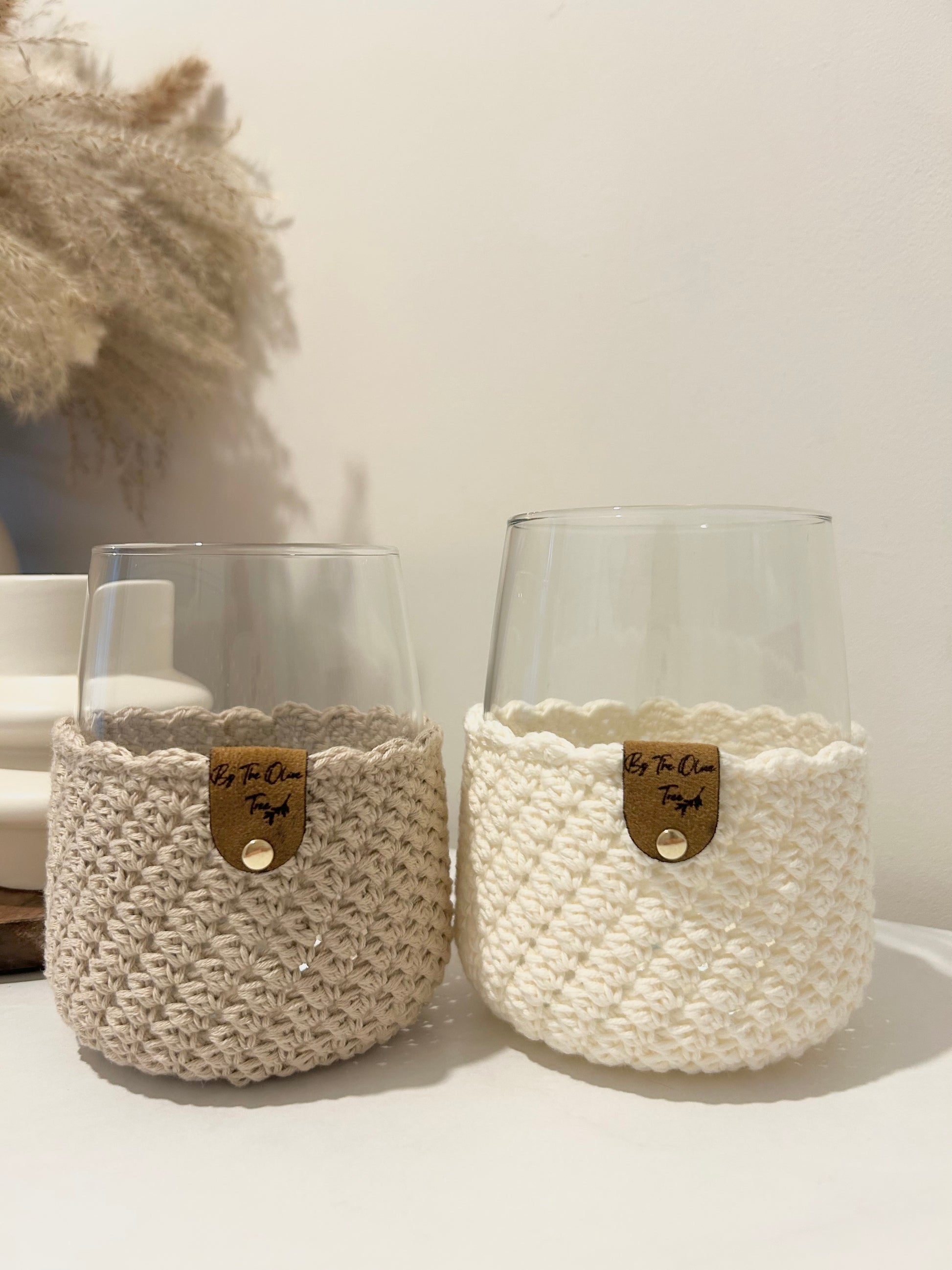 These beautiful water glasses are a beautiful shape to hold with a crochet cover.