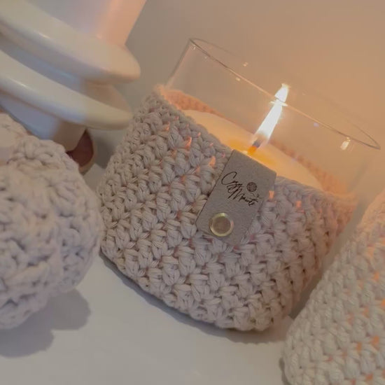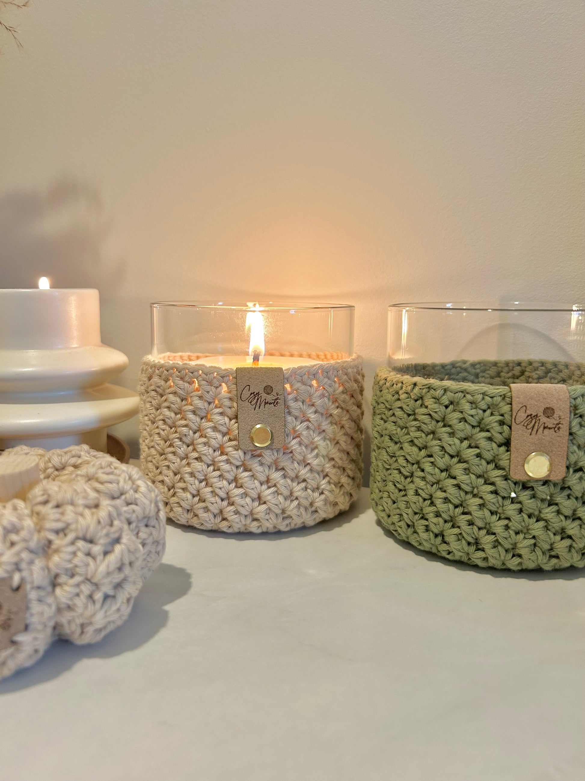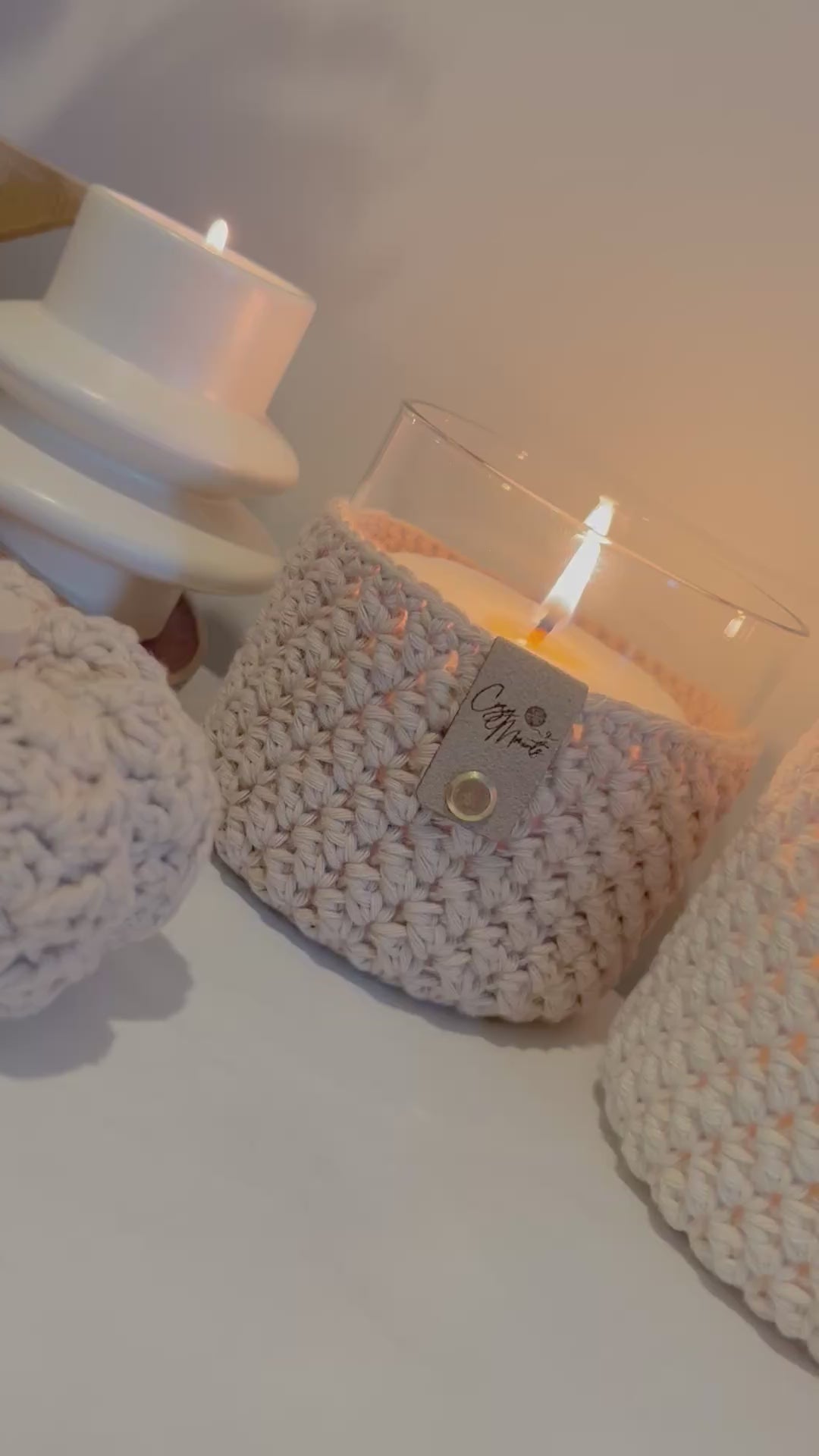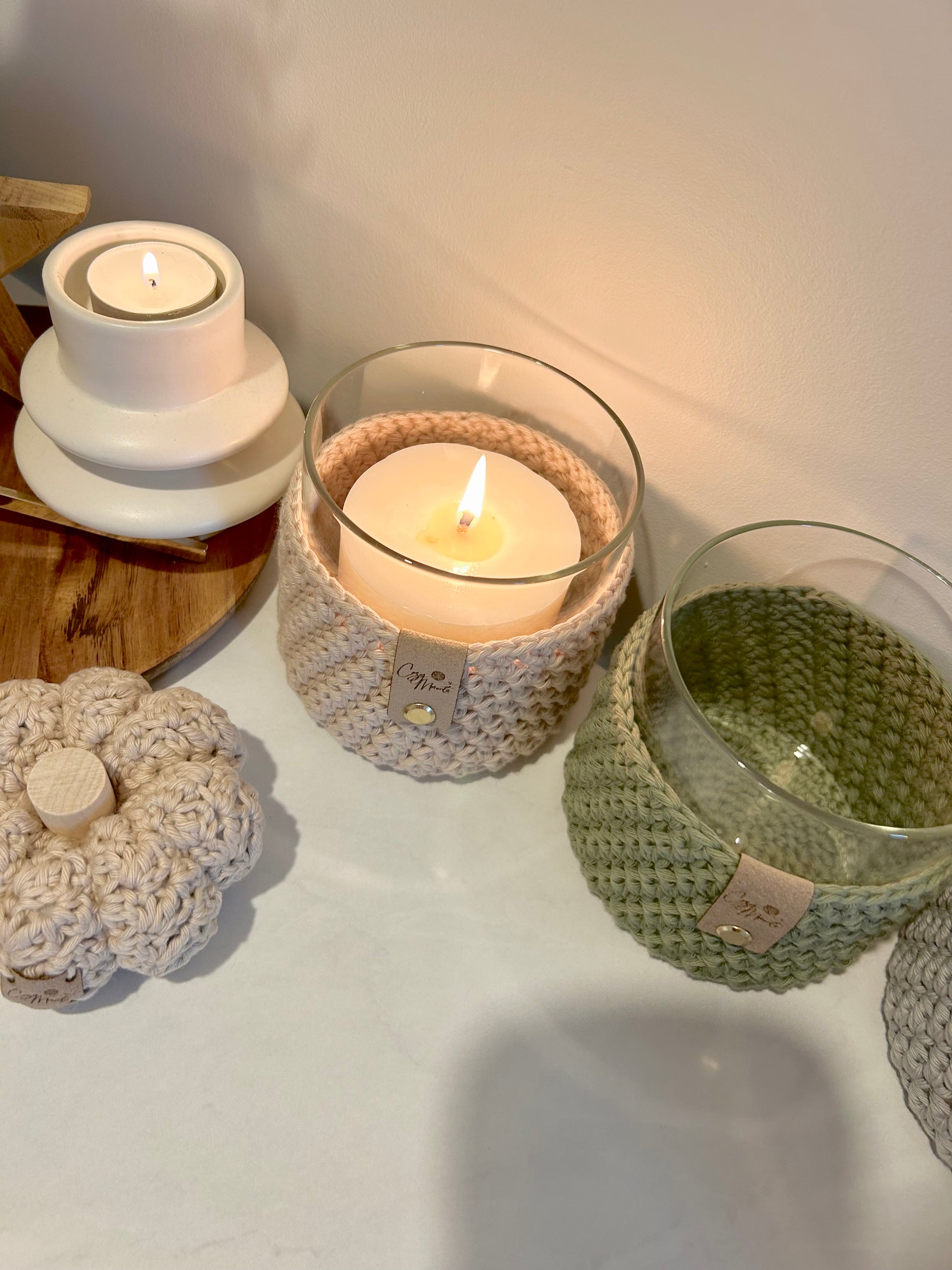 These Jars are made of Glass and covers are carefully and individual crocheted. Perfect for the Cozy season! β¨