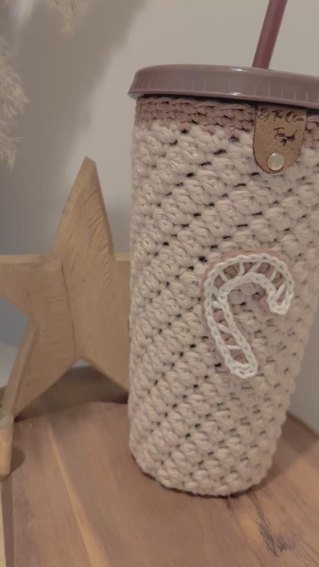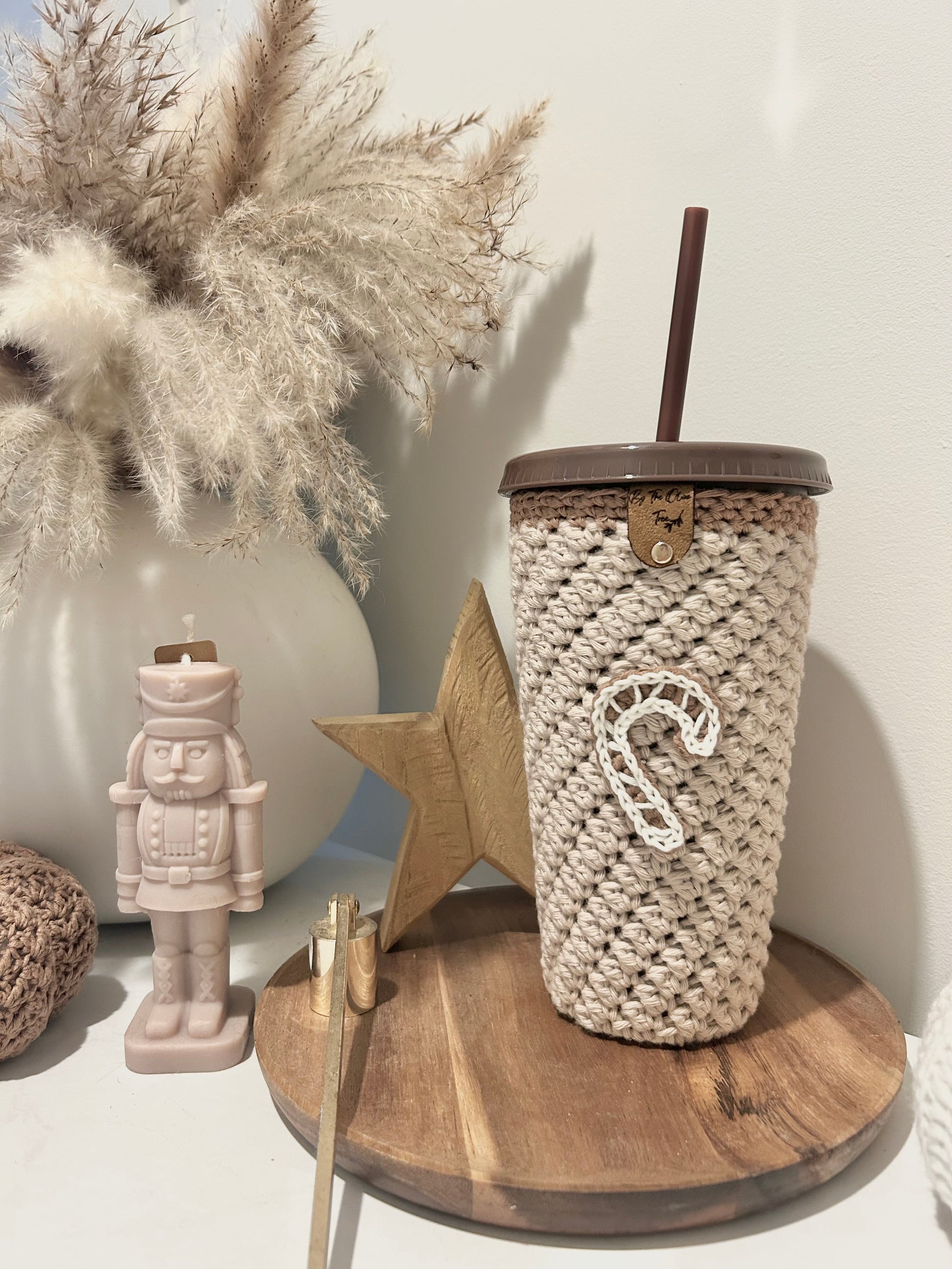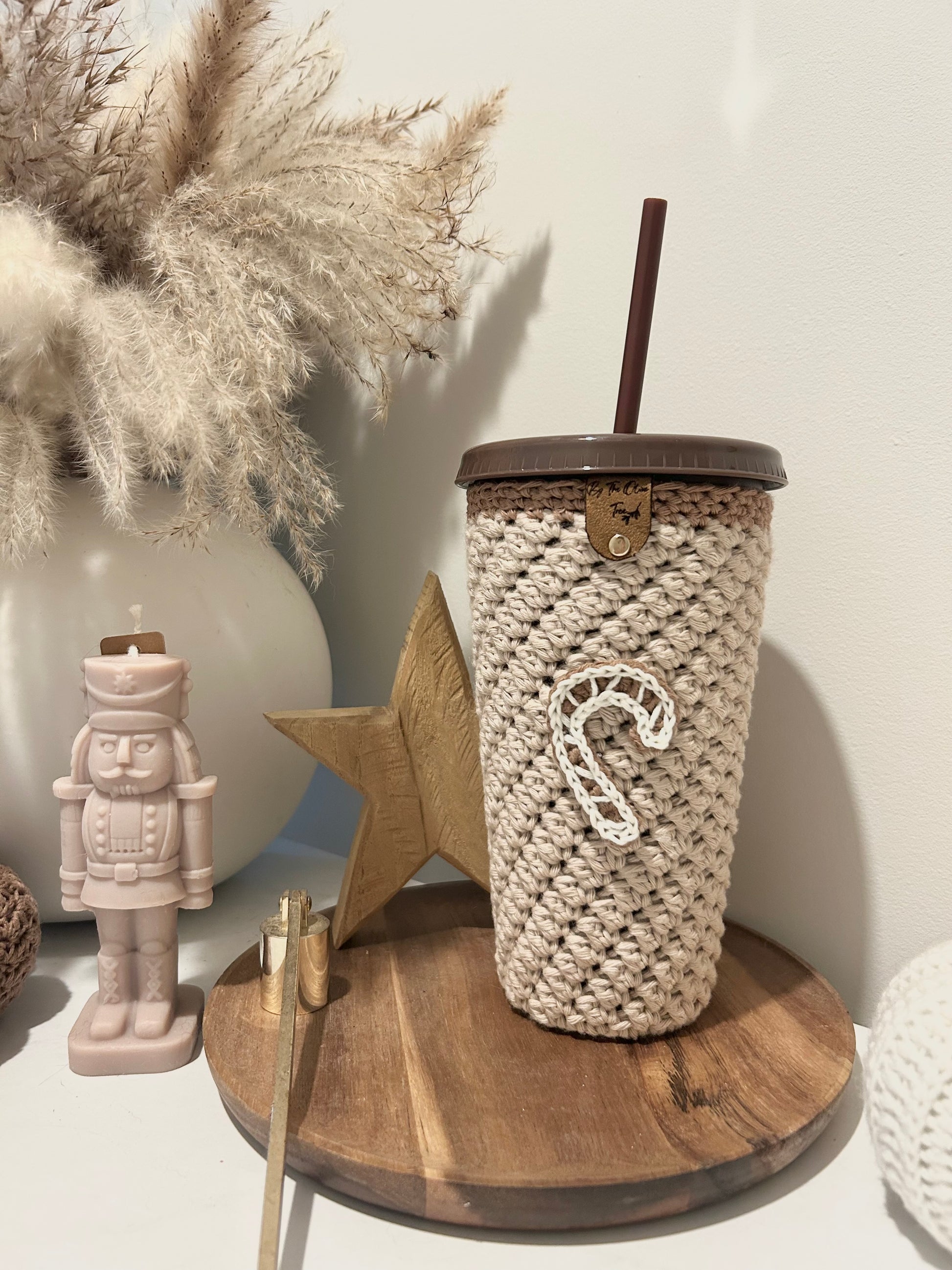 Gingerbread Candy Cane Cold Cup with Crochet Cosy