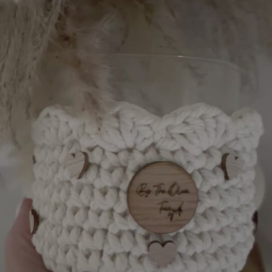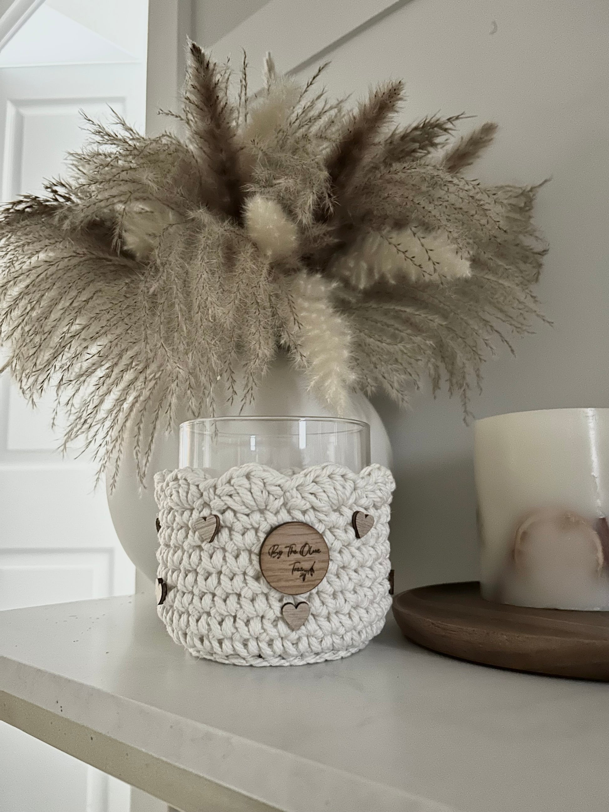 🕯️The jars are suitable for handwashing and the crochet covers simply and gently slide off and back on for ease. Please note the crochet covers are not machine washable, please wash carefully by hand if needed (avoiding the wooden tag and hearts) & allow to dry fully.