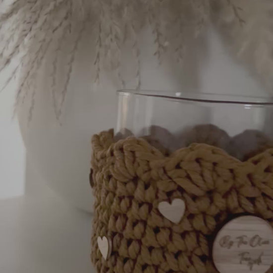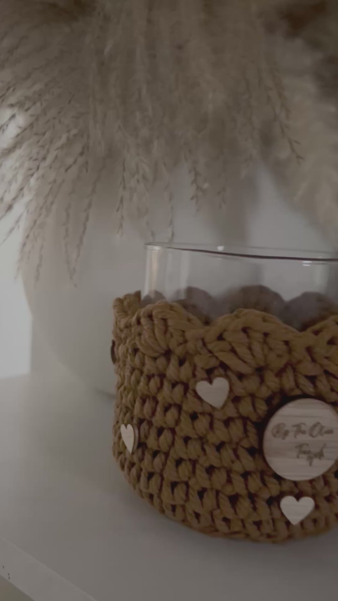 🕊️ The jars are made of Glass and the covers are crocheted with a rustic hard wearing sustainable chunky cotton for that Boho, Farmhouse, soft and peaceful feel.